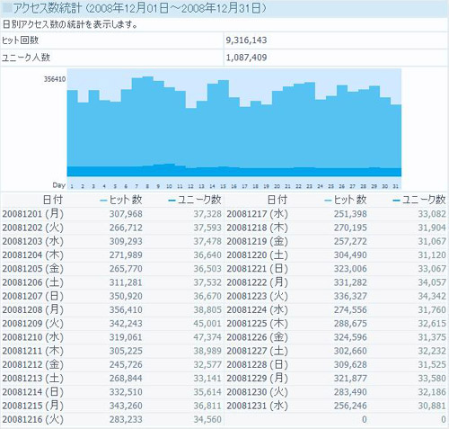 総ヒット数は931万6143。総ユニーク数は108万7409でした。トップページへのアクセス137万4120PV。(内、新環境トップは137万1070、旧ライブドアブログトップは3050)