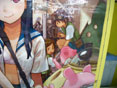 その掲示されていたイラスト全体と、等身大くらいに拡大されていた、メインの女の子のイラストの一部など。