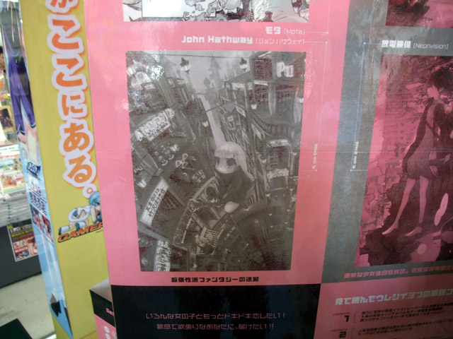 ワニマガジンから2月4日に発売予定の一般向け季刊コミック誌「GELATIN」(ショップリンクへ »)ですが、ゲーマーズ本店にて、鳴子ハナハル氏描く表紙イラストを、メインの子が等身大くらいになるまで、超拡大して掲示していました!