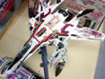 右の痛バルキリーは、メサイアバルキリー アルト機に「きゃらコン マクロスF シェリル・ノーム」(AA)のデカールをつけた作例です。