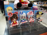 その周りには、Gift 東方ぬいぐるみ「シリーズ1【博麗霊夢】 ふもふもれいむ。」、「シリーズ2【霧雨魔理沙】 ふもふもまりさ。」、「シリーズ3【十六夜咲夜】 ふもふもさくや。」、「シリーズ4【レミリア・スカーレット】 ふもふもみりあ。」や、3月発売予定の「ふもふも ありす」「ふもふも ぱちぇ」のサンプルが展示されていました。