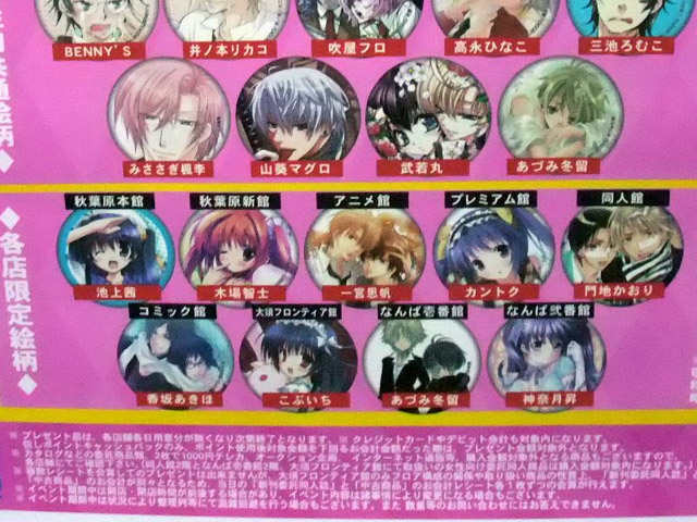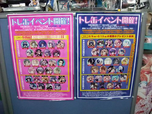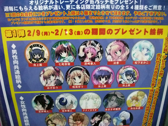 K-BOOKSでは、『対象店舗店頭にて1回のお買い上げ金額500円毎に1個、オリジナルトレーディング缶バッチをプレゼント!』という、「トレ缶イベント」の告知が掲示されていました。