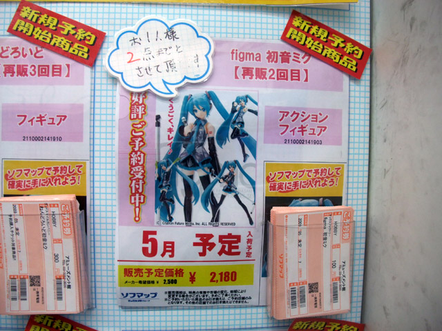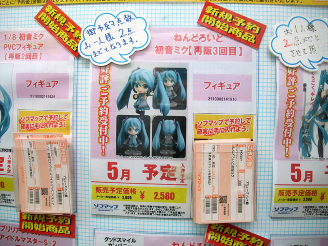 ソフマップアミューズメント館では、初音ミクフィギュア3種の再販分の予約受付が開始していました。