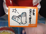で、そのご本尊と化している、「ふもふも れいむ ぬいぐるみ(特大)」の左手が不自然に持ち上がっていて、近くのPOPに『手をたたいてみる?』とあったのでたたいてみると・・・!?