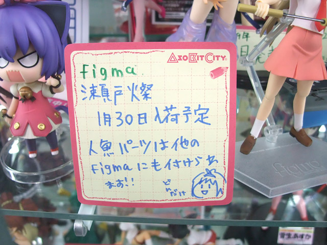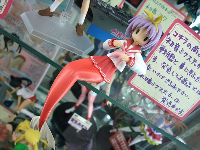 マックスファクトリー「figma 瀬戸の花嫁 瀬戸燦」のサンプル展示が、アキバのいくつかのホビーショップにて開始していました。これは、「瀬戸の花嫁」のキャラ「瀬戸燦」をfigmaにしたもの。キャラシティのPOPによると『人魚パーツは他のfigmaにも付けられます』と書かれ、実際figmaつかさに取り付けたサンプルも展示。とらのあな本店では、人魚ミクがネギダンス。