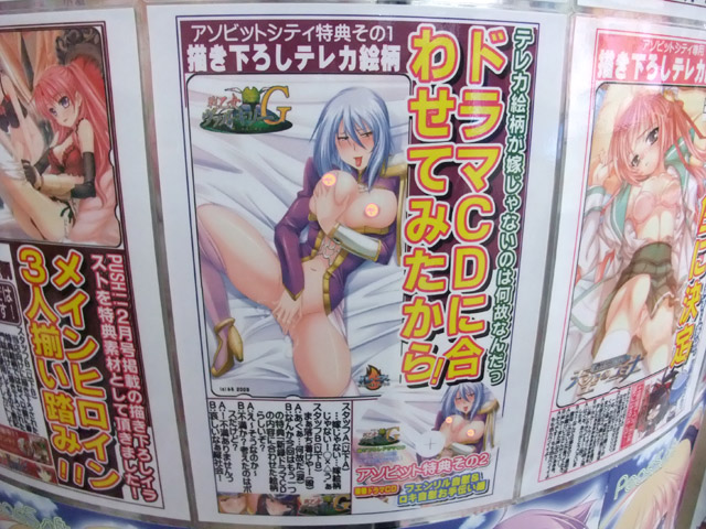 先日、「くぱぁ」もある大画面デモ放映開始をお伝えした、1月30日発売予定のルネのエロゲ「戦乙女ヴァルキリーG ~戦乙女達の黄昏~」(ショップリンクへ »)ですが、とらのあな本店で、「ミッドガルド一混ざりたい 究極の電車ごっこ。」として、特典テレカイラストを大きく掲示していました。