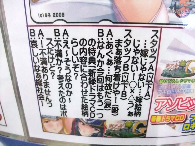 スタッフA(以下A):・・・嫁じゃない・・・嫁絵柄じゃない!○×△う゛ぁ