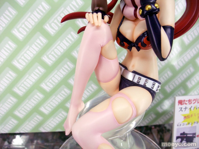 1月24日、コトブキヤラジオ会館にて、コトブキヤ「天元突破グレンラガン ヨーコ 【紅蓮篇】」のサンプルが展示されていました。これは、グレンラガンの劇場版「紅蓮篇」でのバトル後の、バトルダメージをイメージしたコスで立体化したもの。POPによると、展示されていたポーズのほか、ウインク顔、ライフルを持たせたポーズ等も可能!ライフルはサブマシンガンにもなるようです!