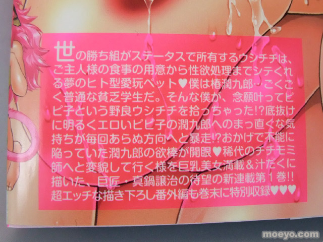 真鍋譲治氏の大人向けコミック「恋するウシチチ」が、1月25日に発売日となりました。商品説明によると『世の中の勝ち組たちがステータスとして所有する「ウシチチ」は、ご主人様の食事の用意から性欲処理までシテくれる、今 流行の「夢のヒト型愛玩ペット」。』という、「ウシチチ」のお話がメイン。フルカラー開脚や合体、発射もありますが、消し、一本線すらありませんでした!