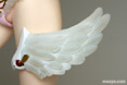 小さな、翼を模したブラのみで隠されている乳。