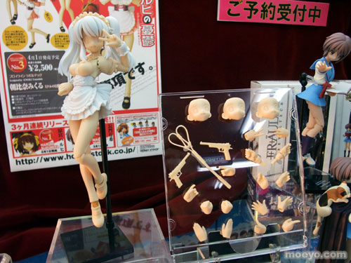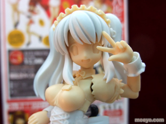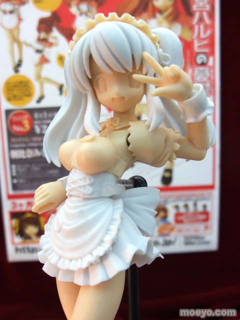 海洋堂「フロイラインリボルテック ヨーコ劇場版」の「アニメイト限定Ver.」の彩色サンプルと、「通常版」のブルーサンプル、そして、「フロイラインリボルテック SP No.3 朝比奈みくる ミクルの冒険Ver.」の無彩色サンプルの展示が、海洋堂HLにていっせいに開始していました。ヨーコ劇場版は「ブラジャーを結びなおし、よりボリュームが強調されたバスト」「下ろし髪」などが特徴。