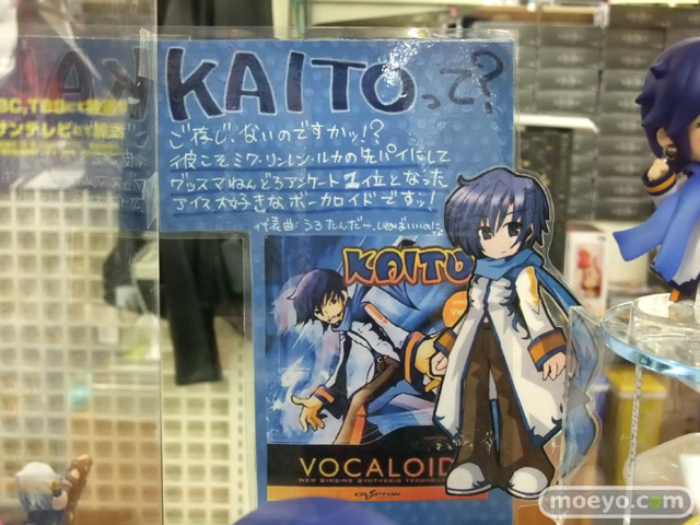 2月6日、グッスマのねんどろいどアンケートで1位になった「ねんどろいど KAITO」が発売されました。ボークス秋葉原店では「大KAITO祭」としたサンプル展示を展開中で、POPには『キャストオフ可!光る!回る!爆発する!』とかも。