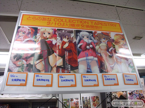 コミケ75で販売された「とらのあな コレクションタペストリー 006~011」が、それぞればらばらとなって、2月10日から毎週1種ずつ、ポイント交換が開始されるようで、とらのあな本店で、実物サンプルの掲示が開始していました。