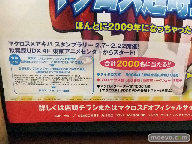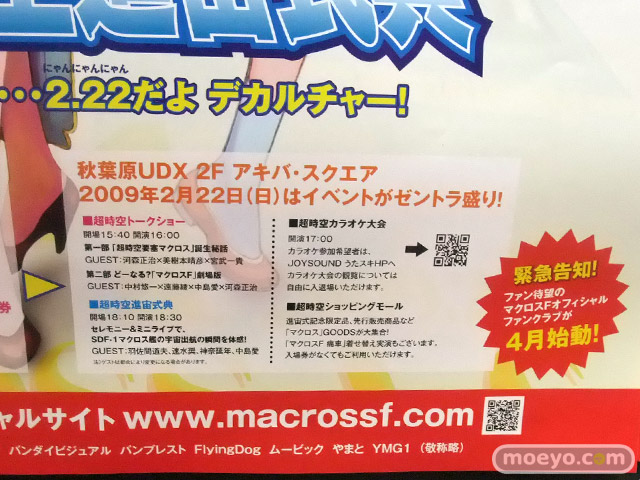 2月7日、初代マクロスの設定年の2009年になったことから、アキバで「マクロス超時空進宙式典~ほんとに2009年になっちゃった・・・2.22(にゃんにゃんにゃん)だよデカルチャー!~」が開催されています。協賛店舗ではポスター掲示も。
