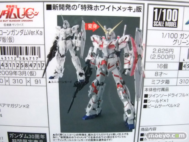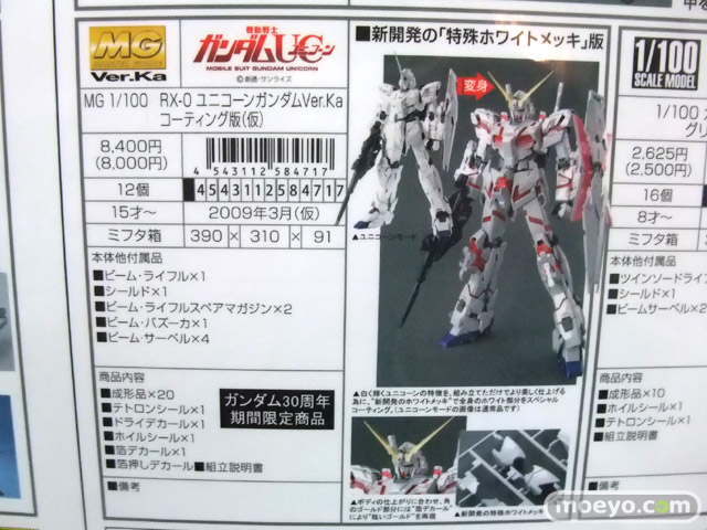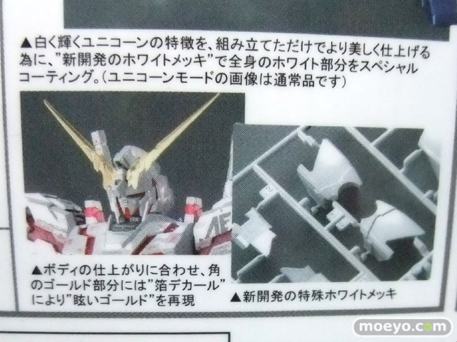 新開発の「特殊ホワイトメッキ」版。白く輝くユニコーンの特徴を、組み立てただけでより美しく仕上げる為に、”新開発のホワイトメッキ”で全身のホワイト部分をスペシャルコーティング。ボディの仕上がりに合わせ、角のゴールド部分には”箔デカール”により”眩しいゴールド”を再現。【付属品】ビーム・ライフル×1、シールド×1、ビーム・ライフルスペアマガジン×2、ビーム・バズーカ×1、ビーム・サーベル×4
