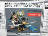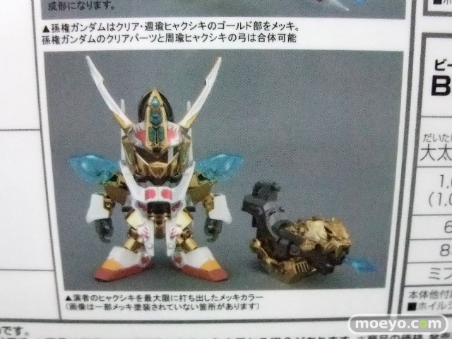 孫権ガンダムと周瑜ヒャクシキのコンビが必殺技シーンをイメージしたカラーで登場!孫権ガンダムはクリア・周瑜ヒャクシキのゴールド部をメッキで再現。孫権ガンダムのクリアパーツと周瑜ヒャクシキの弓は合体可能。【付属品】孫権ガンダム用刀×1、周瑜ヒャクシキ用刀×1、周瑜ヒャクシキ用弓×1、周瑜ヒャクシキ用大砲×1