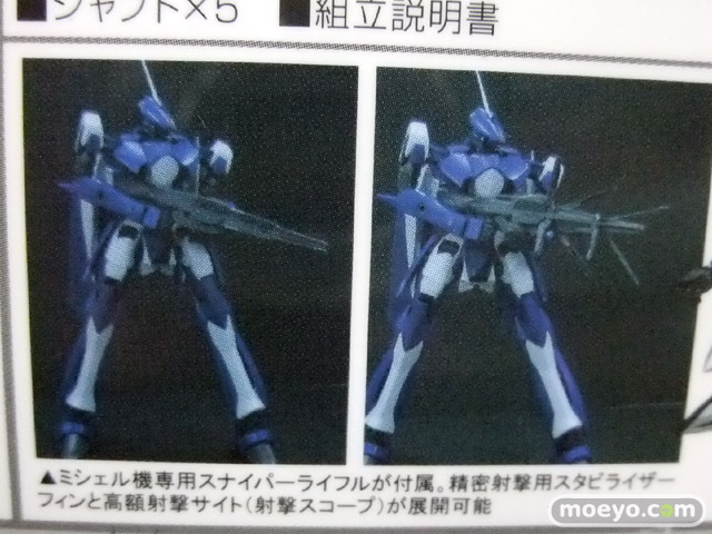 スカル小隊全機揃い踏み。ミシェル機専用スナイパーライフルが付属。精密射撃用スタビライザーフィンと高額射撃サイト(射撃スコープ)が展開可能。【付属品】スナイパーライフル×1、ナイフ×1、シールド×1 ※写真は開発途中のため実際の商品と異なる場合があります。