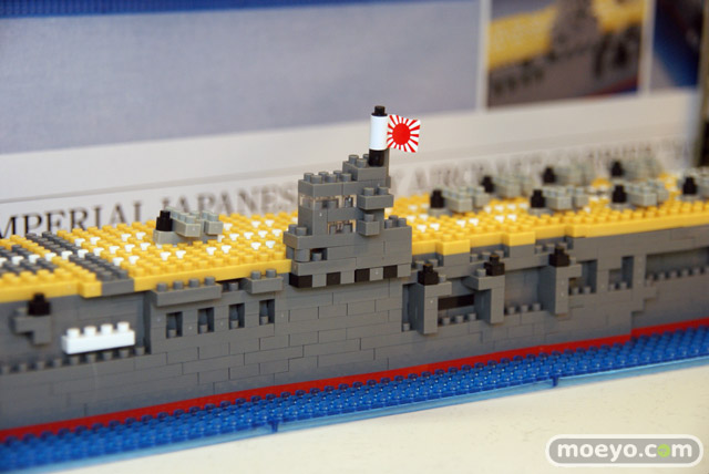 「nanoblock空母赤城」はこのミニブロックを使用して作れる旧日本海軍の航空母艦赤城のキットです。全長は48cm、スケールにするとおおよそ1/600になります。机上でも十分に楽しめる事の出来るサイズのウォーターラインモデルです。