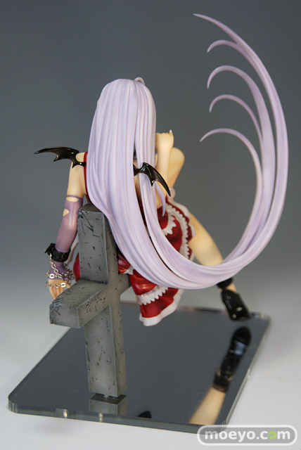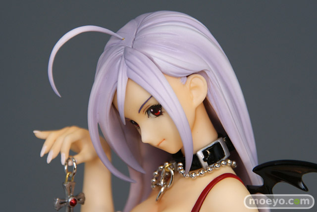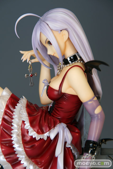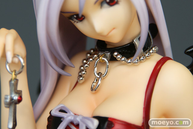 大好評アニメ「ロザリオとバンパイア」(集英社『ジャンプSQ.』にて好評連載中)より、ヒロイン「赤夜萌香」のバンパイア覚醒後状態である、「裏萌香」を初の立体化!コミック第3巻の表紙の衣装をそのままにポージングをアレンジしました。ロザリオを片手に微笑む姿は、美しさと妖しさを合わせ持つ妖艶な魅力。ミニスカートから伸びる長い脚は鏡面仕上げの台座により魅力倍増。その魅力的な脚線美をご堪能ください。チェーンには金属を使用し、PVCやABSとは違った質感をお楽しみいただけます。