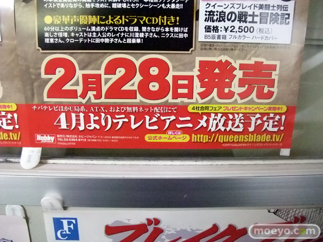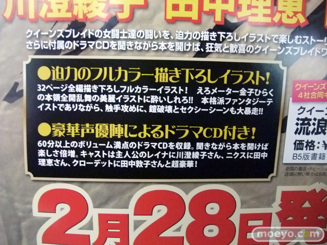 2月28日に発売予定のビジュアルブック「クイーンズブレイド美闘士列伝 流浪の戦士冒険記」の告知POPの掲示が、K-BOOKSにて開始していました。イラストは「えろメーター」の金子ひらく氏。レイナの声は川澄綾子さんが担当。