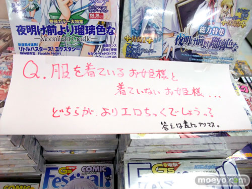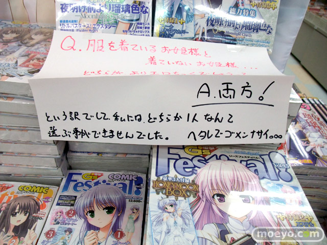 2月20日、雑誌「電撃G’s Festival Vol.15」が発売されました。ゲームシティでは、付属の抱き枕カバーと、1月発売の「G’s F Comic Vol.5」付属のMFTを並べ『服を着ているお姫様と着ていないお姫様・・・どちらが、よりエロちっくでしょう?』。