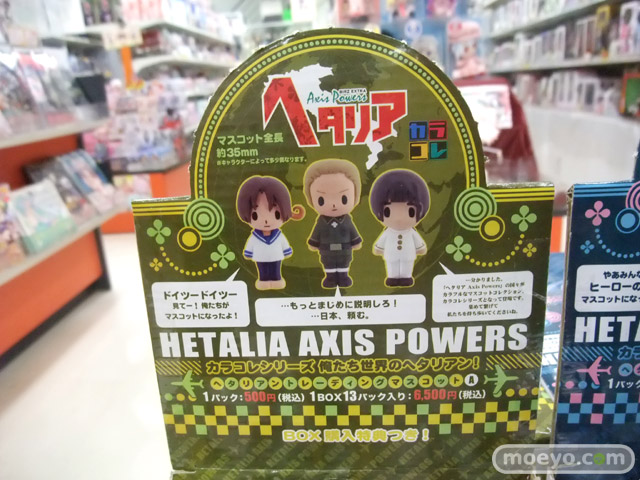 ■ 商品名:「カラコレ ヘタリア ヘタリアントレーディングマスコット A」(AM) ■ 発売元:ムービック ■ 仕様:トレーディングフィギュア ■ サイズ:各全高約33~39mm ■ 価格:1BOX13個入り 税込6,500円/1パッケ税込500円 ■ 発売: 2009年2月 ■ 関連リンク:公式 |