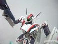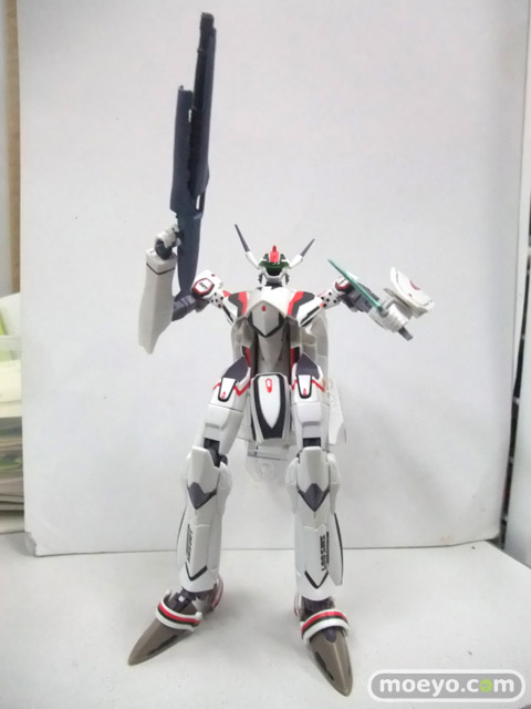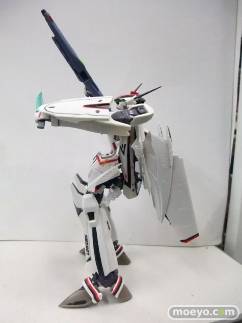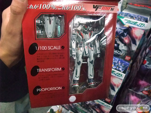 1/100統一スケールで歴代マクロスシリーズの可変メカをラインナップする新ブランド「VF100’s(ブイエフハンドレッズ)」始動。第1弾はマクロス最新作「マクロスF」より、主人公機VF-25Fメサイアバルキリー(早乙女アルト機)。バトロイド形態からガウォーク/ファイターの各形態への変形を、一部差し替えパーツを使用することで再現。頭部や肩関節など、バトロイドやガウォークの可動に特化したパーツ群と、ファイターのフォルム固定に特化したパーツ群との差し替えとなります。メイン素材は硬質のABS樹脂で、成形色を生かしつつ、特徴的なラインを彩色、機体各部のマーキングをタンポ印刷で再現します。