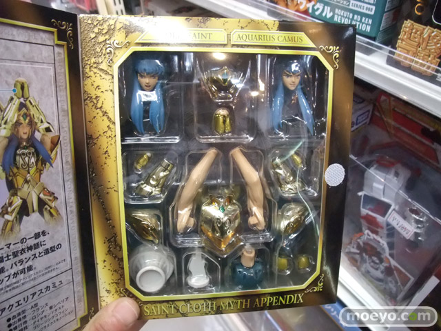 聖闘士聖衣神話シリーズに「アクエリアスカミュ(冥衣)」が登場。「黄金聖闘士」の冥衣(サープリス)版です。ハーデスの軍門に下った証でもある漆黒の冥衣は、黄金聖衣をデザインベースとしながらも、鋭利に禍々しく変貌した姿を完全新規造型しています。パーツの主要部分にはダイキャストを使用。またオブジェ形態にも組み換え可能です。(オブジェ形態は原作・アニメ共に描写はないため、トイオリジナルによるスタイルとなります。)