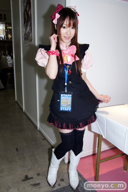 コスプレスペースも広く、特殊メイク体験などレイヤーさんにも嬉しい出展はあったのですが、肝心のレイヤーさんの参加が少なかったのが残念・・・と会場をウロウロしていたところ、オムニ社さんのブースにてコスプレイヤーさん発見!