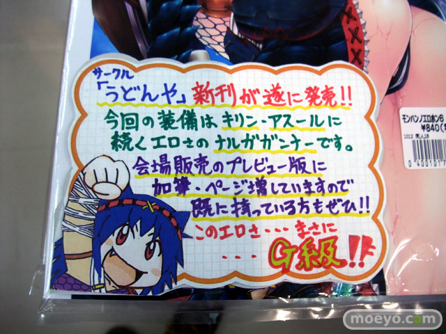 サークルうどんやの大人向け同人誌「もんはんのえろほん 6」がアキバに入荷していました。メロンの商品説明では『エロ装備半脱ぎ&恍惚の可愛エロ表情は破壊力抜群!』と紹介され、とらのPOPでは『このエロさ・・・まさに・・G級!!』。