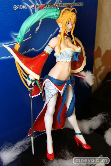 3月10日、都内某所にて開催された店舗向け商談会「第24回宮沢模型 商売繁盛応援セール」での、グリフォン「一騎当千DD 孫策伯符 -晴れ着Ver.-」のサンプル展示の様子を。フロントは超ミニスカですが、はいてませんでした!
