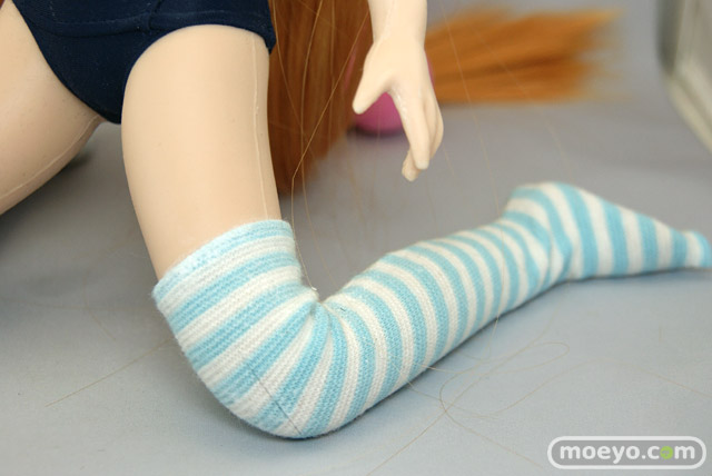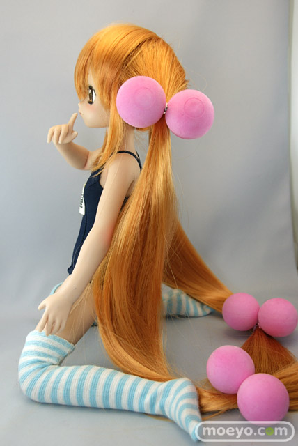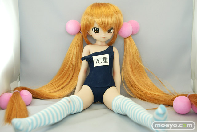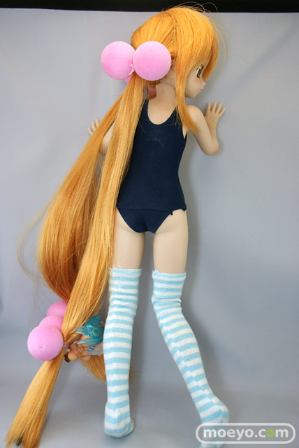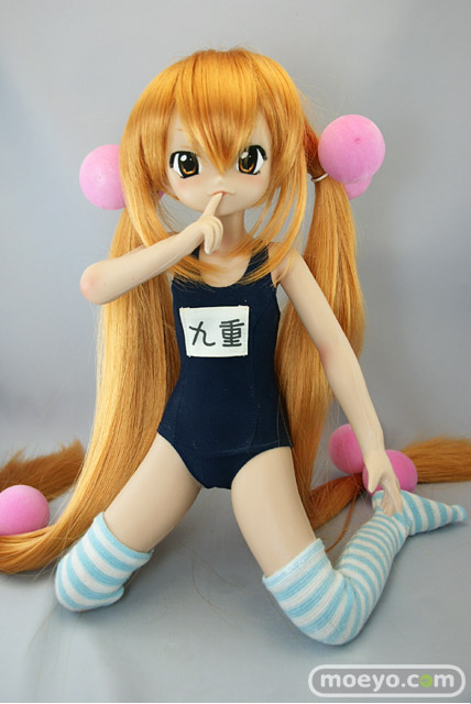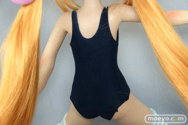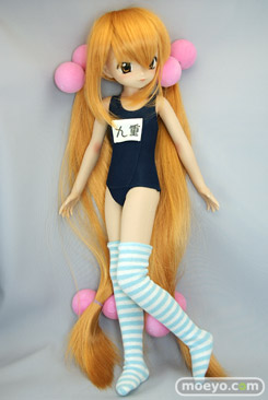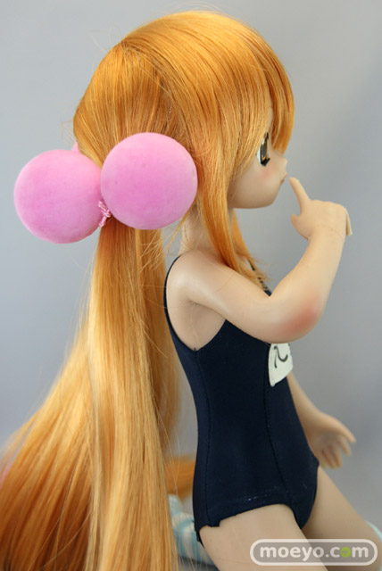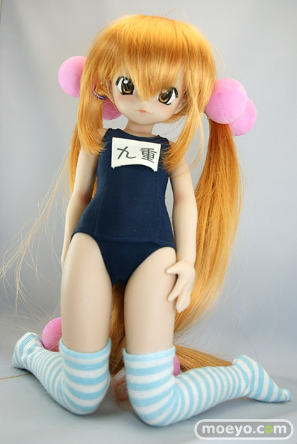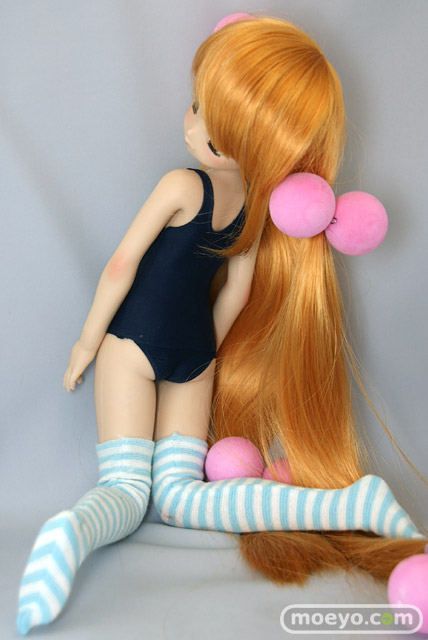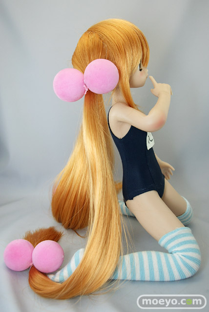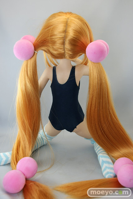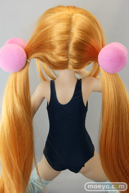「SFD九重りん」は特徴のあるヘアスタイルを再現したウィッグと髪飾り、そしてスクール水着とオーバーニーソックスが付属します。もちろん市販されているお好みの1/3サイズのドール衣装やウィッグに付け換える事もできます。