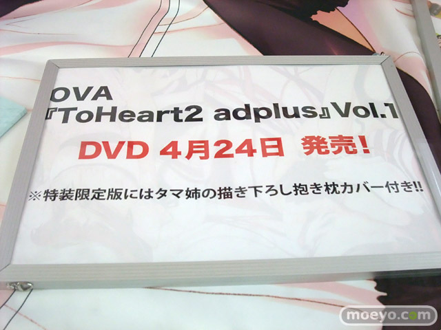4月24日発売予定のDVD「OVA ToHeart2 adplus Vol.1 特装限定版 向坂環パック」に付属する「タマ姉抱き枕カバー」のサンプル展示が、ゲーマーズ本店の店頭で開始しています。裏面の不安そうな表情で脱いでるイラストも展示!