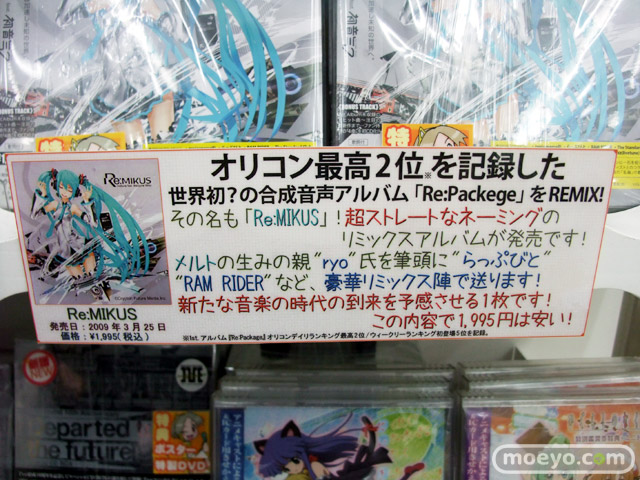 世界初?合成音声アルバム「Re:Packege」をリミックスした「Re:MIKUS」ほか、「涼宮ハルヒの直列・並列 ボーカルミニアルバム」、「To LOVEる キャラクターソング集」等、3月24日にアキバで発売が確認できたCD情報をお伝えします。