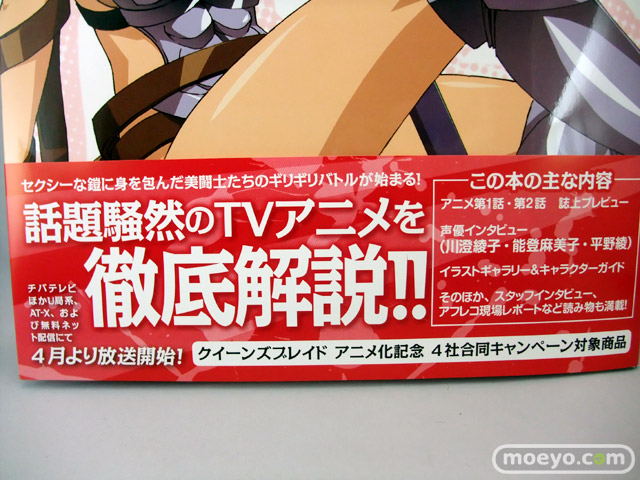 3月27日、ムック「クイーンズブレイド 公式ナビゲートブック」が発売されました。商品説明によると『描き下ろしイラストや初公開の場面写真、~超豪華声優陣やよしもときんじ監督をはじめスタッフのインタビューなど、先行情報満載でお届け』。