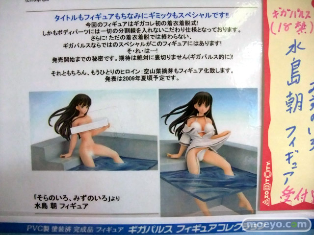 ギガパルス「ギガパルス フィギュア コレクション そらのいろ、みずのいろ 水島朝」の告知POP掲示と予約受付が、キャラシティにて開始していました。全裸も可能で、商品説明では『ボディパーツには一切の分割線を入れない』とのこと。