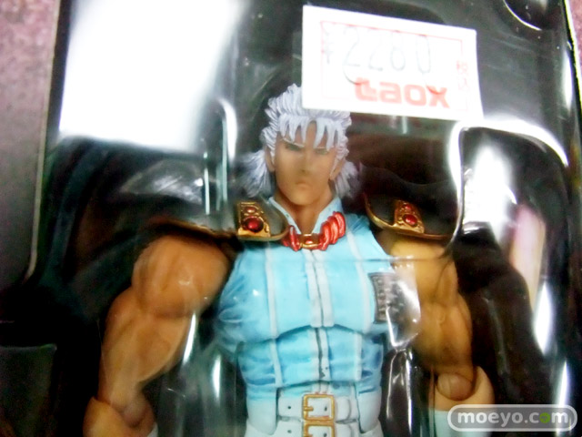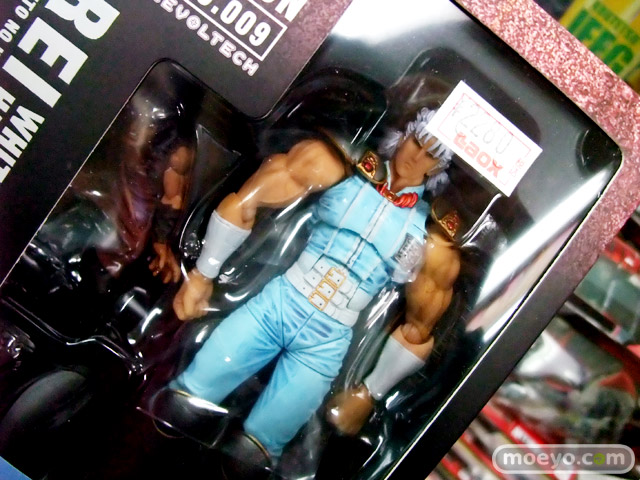 リボルバージョイントの導入により、飛躍的に広がった可動範囲と圧倒的な関節保持力を手にした「北斗の拳Revo」が、遂に第2期シリーズへ突入。ラオウとの戦いに敗れ白髪と化したレイが登場。瀕死の水鳥が見せる鮮やかな舞を14個のリボルバージョイントで再現。華麗な足の動きを表現するために膝には二重関節を搭載。なびく白髪にはジョイントと軟質素材を使用して可動範囲を確保。付属の飾り台を使用すれば、最後の奥義「飛翔白麗」も楽しめます。付属の牙一族にはスライドギミックを使用しているので思いのままにスライスできます。