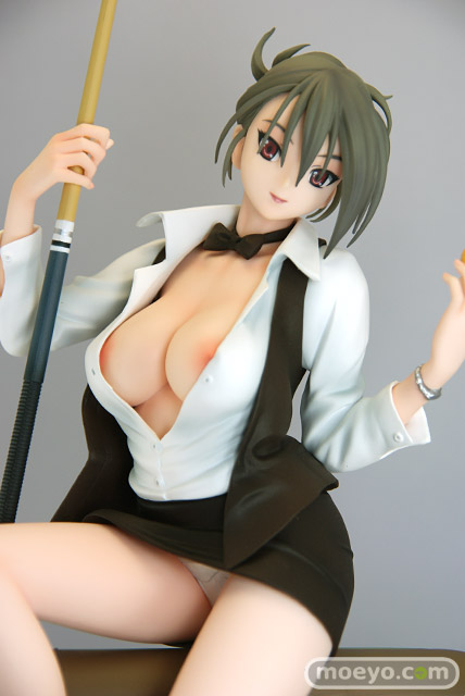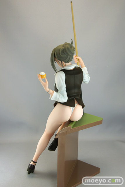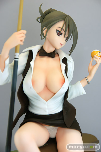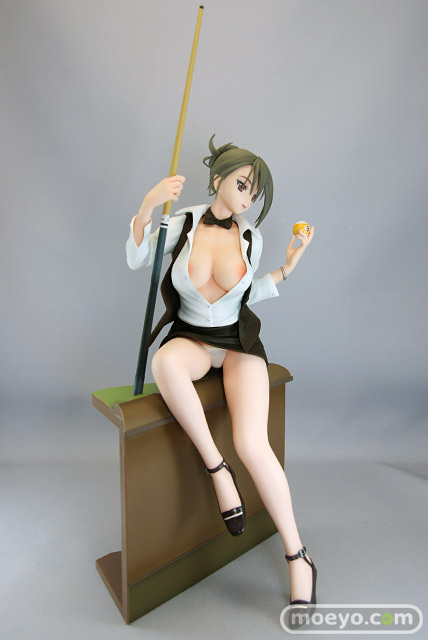 2007年に発売された八宝備仁先生の人気画集「SWEET BODY」より、メガストア05年5月号の表紙として使用された「ハスラー」のイラストを立体化!今までありそうでなかったこのモチーフ、零れ落ちそうな美乳と挑発的な表情が絶妙な取り合わせです。またイラストの雰囲気再現の為ベースにも拘り、ビリヤード台の一部を再現!これにより台に掛かる滑らかな生足を強調させたポージングを強く印象付けます。シャツのボタンを外したら・・・ 更にスカートも・・・お約束の別パーツ付きで盛り沢山のお楽しみ仕様となっています。