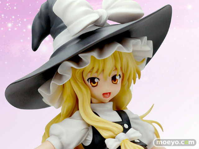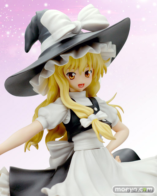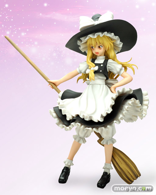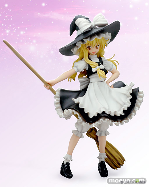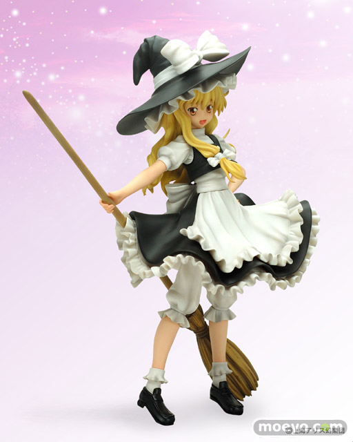 空前の話題同人ゲーム『東方プロジェクト』のPVC塗装済み完成品フィギュアのシリーズ発売が決定!初陣を切って「東方」作品群の2大ヒロインの1人「普通の魔法使い 霧雨魔理沙」が友人「博麗霊夢」と同時に発売です。キャラクター人気投票でも常に上位トップ3に入るほどの人気キャラクター。霊夢と共に『東方』を代表するヒロイン。黒服・黒帽子に白エプロン、そして箒と彼女のメインコスチュームでの立体化です。