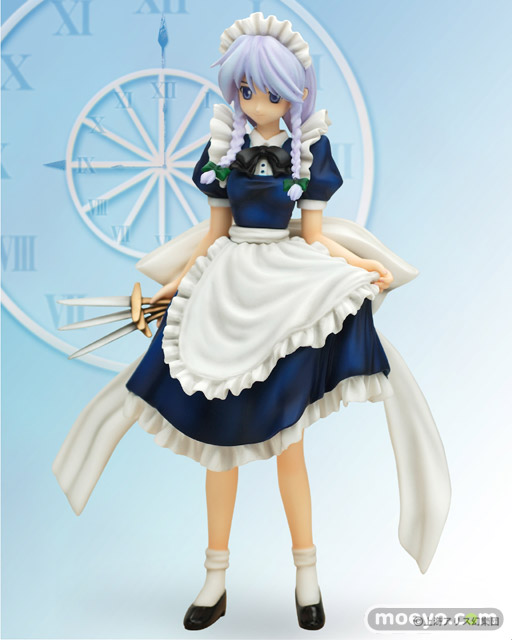 空前の話題同人ゲーム『東方プロジェクト』のPVC塗装済み完成品フィギュアのシリーズ発売が決定!第2弾は「十六夜咲夜」と「レミリア・スカーレット」の発売です。キャラクター人気投票では上位3位に常にランクインするほどの人気キャラクター。同時期発売の「レミリア・スカーレット」と一緒に飾る事で『紅魔館の主人とそのメイド』の姿を再現する事が出来ます。