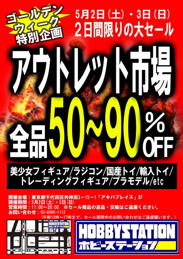 イベント情報5月2日(土)・3日(日)に、アキバプレイス 5F(スーパーモデラーズ跡地)でゴールデンウィーク特別企画としてセールが開催中!