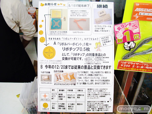 当店発行の「海洋堂リボルバーポイント」カードは1枚=0.5チップとして、”リボチップ”の特典をお申し込み頂けます。尚、具体的な景品情報ならびに、交換方法は、5月下旬頃より、店頭および、