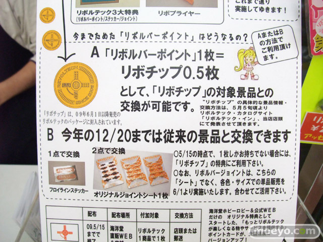 海洋堂HLにて、リボルテックの「ユーザー還元システム”リボチップ”導入」の告知が掲示されてました!これは、海洋堂HLのみの特典だった「リボルバーポイント」を全国規模に拡大した感じで、集めるとポイントに応じた特典がもらえます!