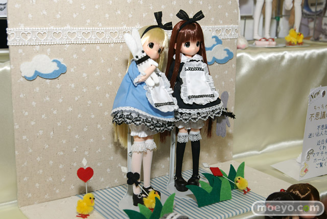 ドールショウ25のママチャップトイブースにて、イラストレーター七尾奈留氏がデザインを担当されたオリジナルドール「柚月(ゆずき)」や、ちっちゃなもこちゃんシリーズ「不思議の国のもこ」などの新作が展示されていました。