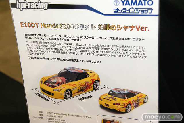 ■ 商品名:「E10DT HondaS2000 キット 灼眼のシャナVer.」(RA) ■ 仕様:RCカー ■ サイズ:1/10スケール 全長約430mm 全幅約205mm ■ セット内容:E10DT キット本体、Honda S2000 ボディー(未塗装)、キャラクターデカール、 T-DRIFT タイヤ&WORK マイスターホイール、サターン27T モーター ■ 価格:税込15,540円 ■ 発売:2009年5月下旬 |