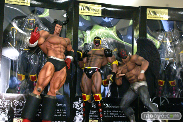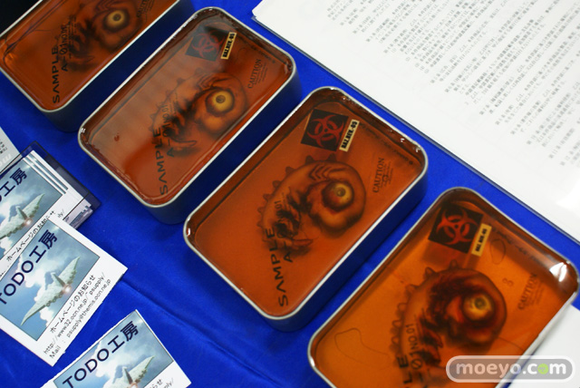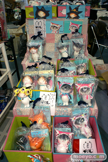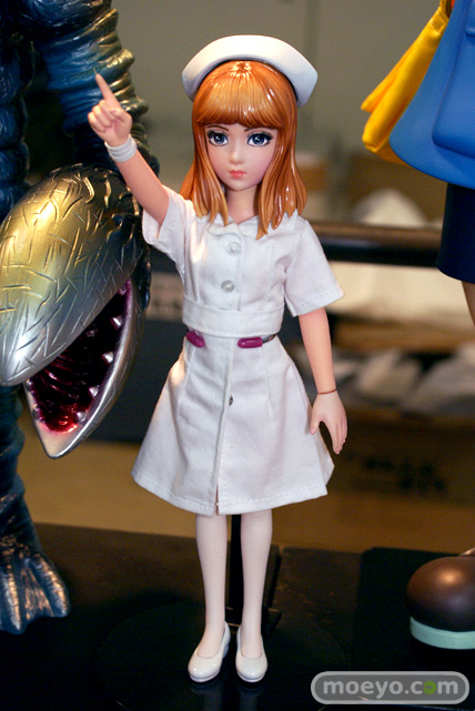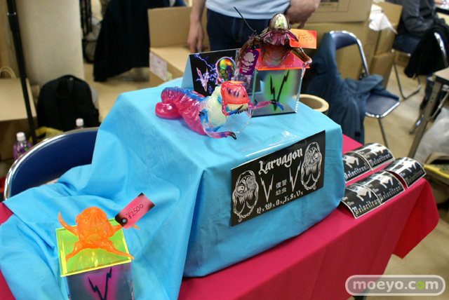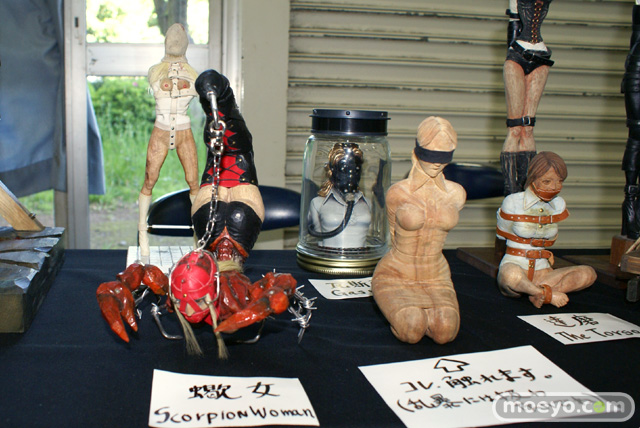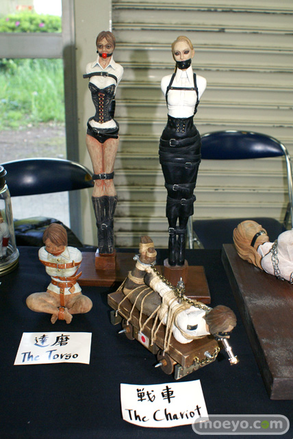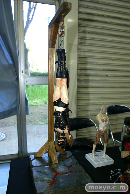 塗装してないサンプルに注目していただくと解かると思いますが、体の部分が木でできています。木の質感、フェテッシュな衣装、個性的なフォルムが絡み合い、独特の存在感を放っていました。