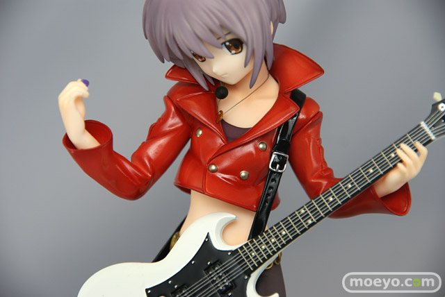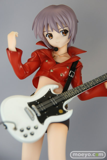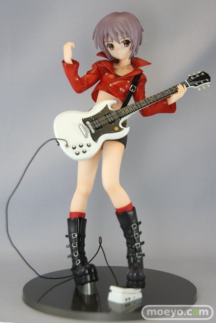 マックスファクトリーによる「涼宮ハルヒの激奏」立体化シリーズ第3弾、パンクスタイルの「長門有希」がいよいよ登場です!書下ろしイラストのイメージを元に、ライブシーンさながらのクールなポーズで立体化。ジャケットの裾から覗くおへそ周りなど、フェティッシュなこだわりにも要注目です。ブーツやチェーンベルト、ギター、レザージャケットなどの緻密なディティールも圧巻!原型制作は引き続き黒田真徳が担当。「激奏みくる」「激奏ハルヒ」と揃えて飾れば、より一層の臨場感が味わえます。