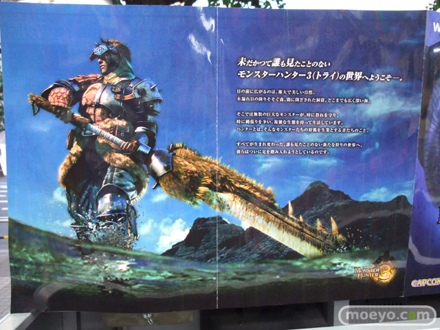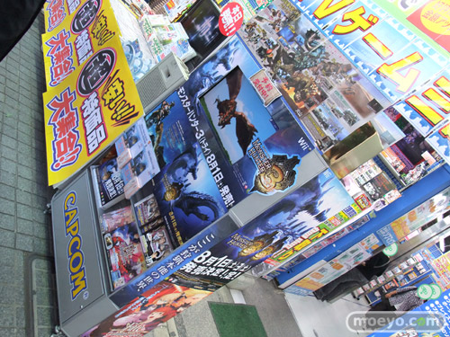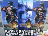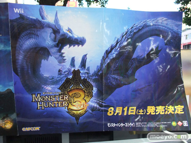 8月1日に発売日が決定した、Wii「モンスターハンター3(トライ)」の予約が、アキバデモ開始しています。ソフマップAM館では、店頭にデモ放映用の特設モニターを設置し、周りには新モンスターや新武器の情報チラシなども!