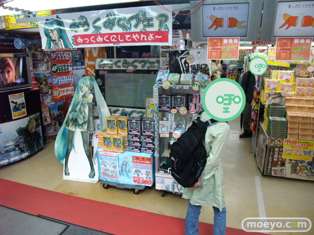 ゲームシティ店頭でみっくみくフェア ミクのコスプレ店員さんも