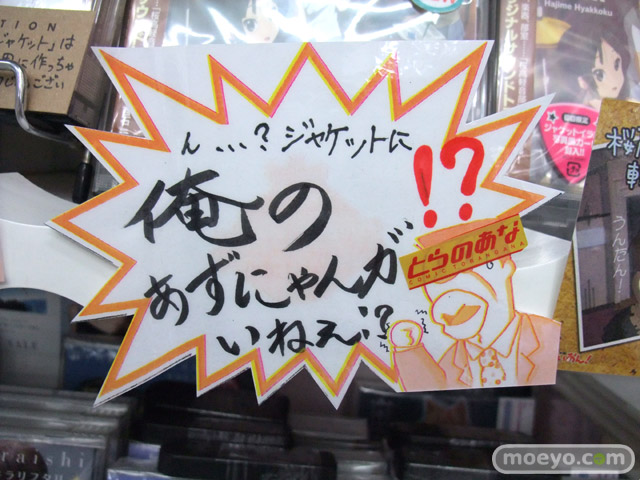 6月2日、CD「けいおん! オリジナルサウンドトラック」が発売されました!とらのあな本店では、発売を記念?した、『担当(俺)が自分専用に作っちゃった』という、「あずにゃんジャケット」も展示されていました!違和感がないのがすごい!
